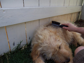 Lucy desperately wants to chew on the brush so I had to put the bone in front of her a bunch of times today and say "You chew; I brush!" (She was totally into the bone and wouldn't do anything else until she saw the brush, of course.)